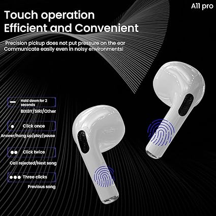 - **Tamaño Compacto (Tipo AirPods):** Diseño compacto y ergonómico, similar a los AirPods originales, asegurando comodidad durante largas sesiones de uso.